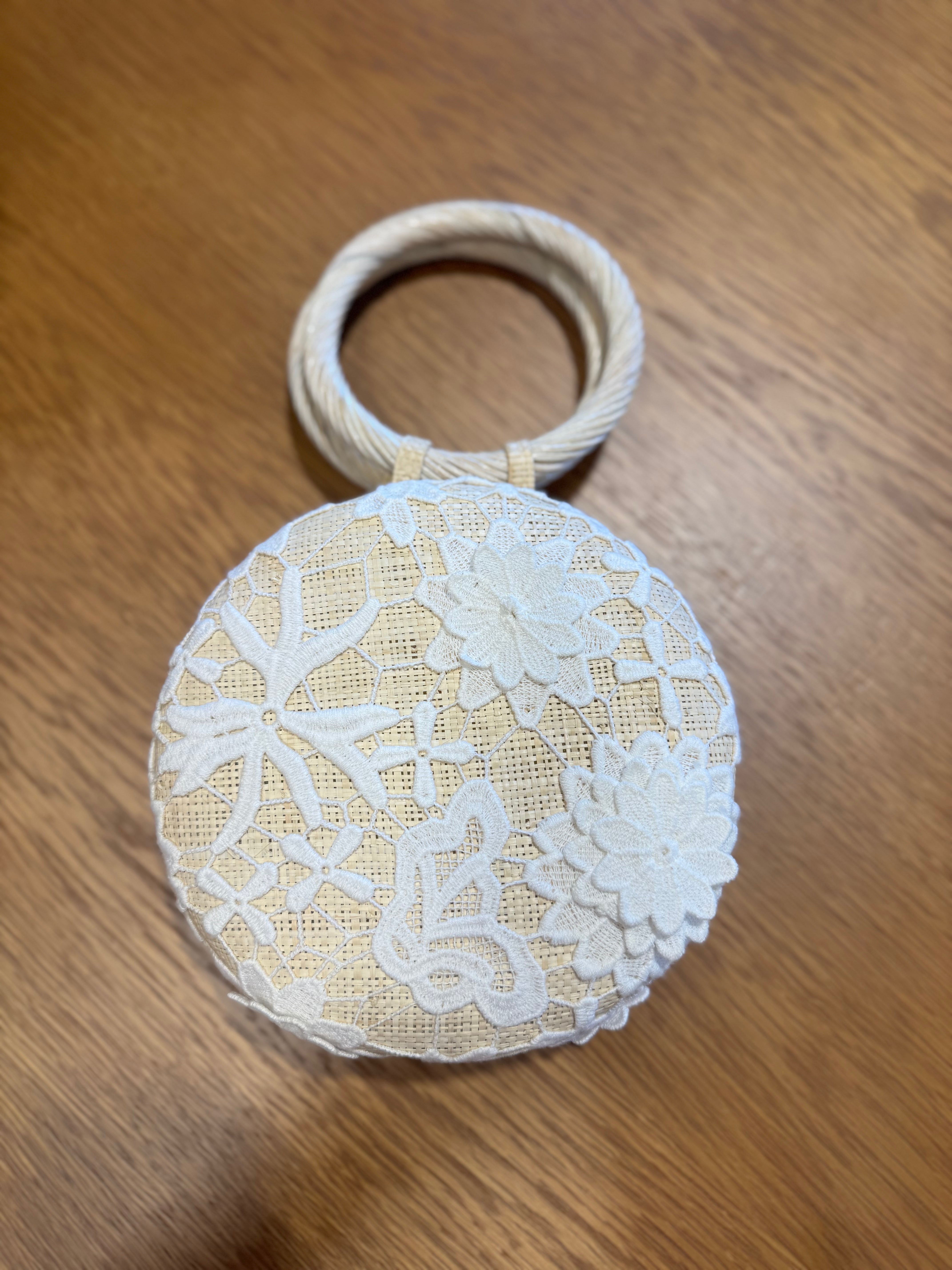 Introducing the Lorient Bag, a charming circular straw handbag adorned with delicate white lace details. This distinctive silhouette offers a fresh take on classic style, perfect for those seeking something beyond the ordinary. The intricate lace accents add romantic appeal while the natural straw provides durability and breathability. Compact yet spacious enough for daily essentials, this bag effortlessly elevates casual outfits and pairs beautifully with summer dresses. A statement piece that proves timeless design never goes out of fashion.