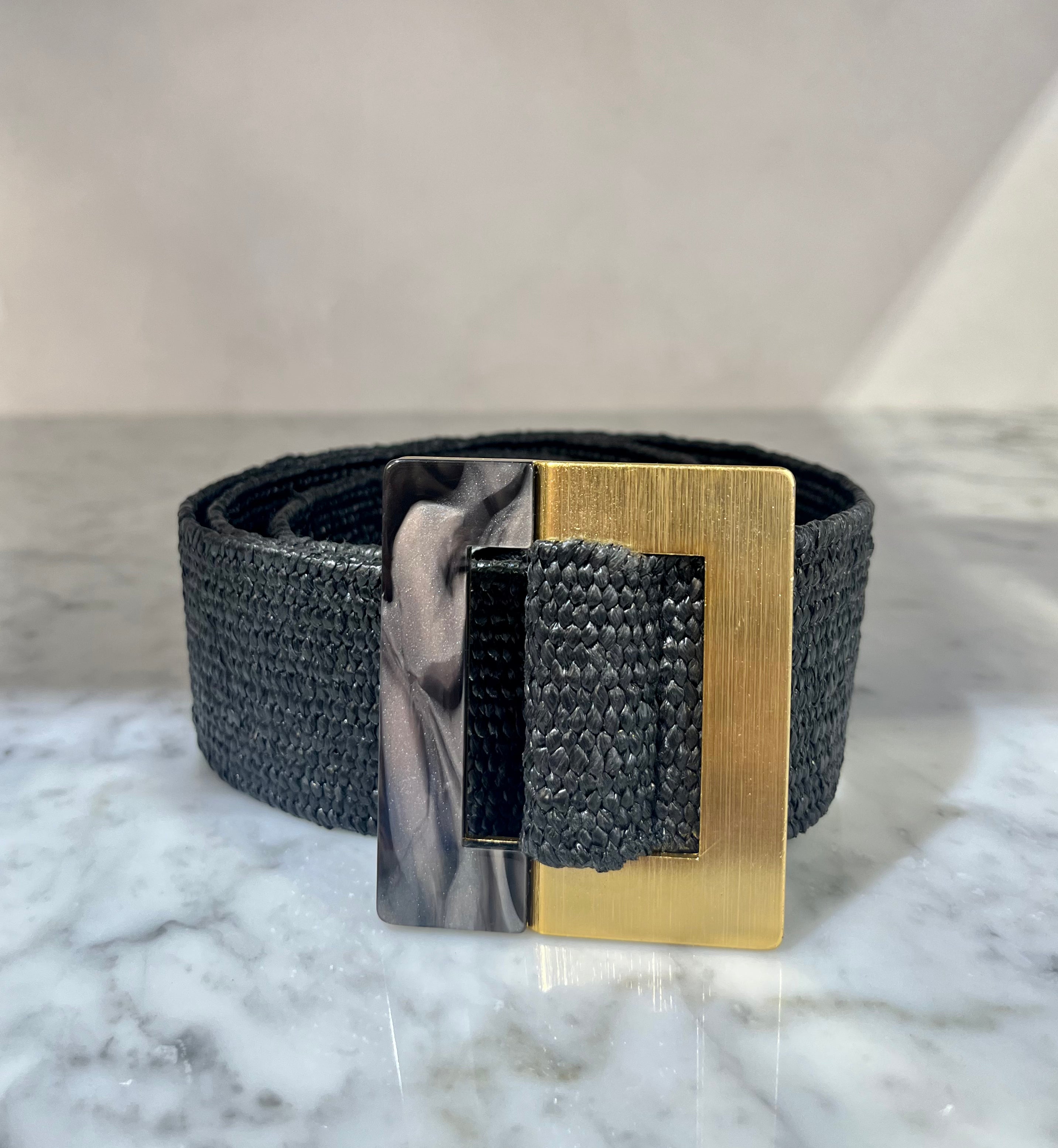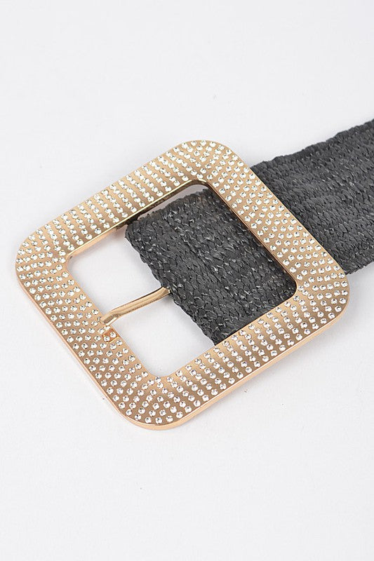 Black Metal Buckle Plus Size Stretch Straw Belt