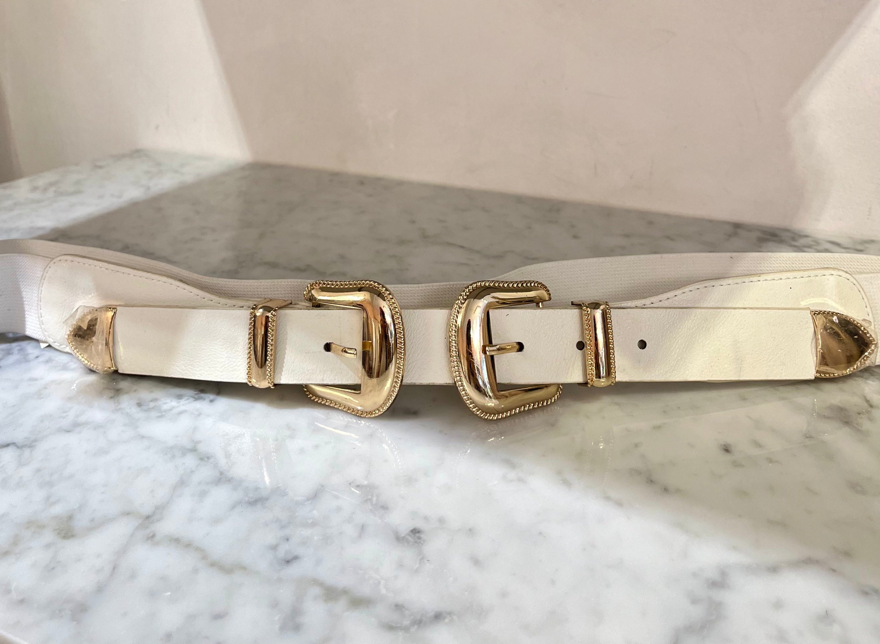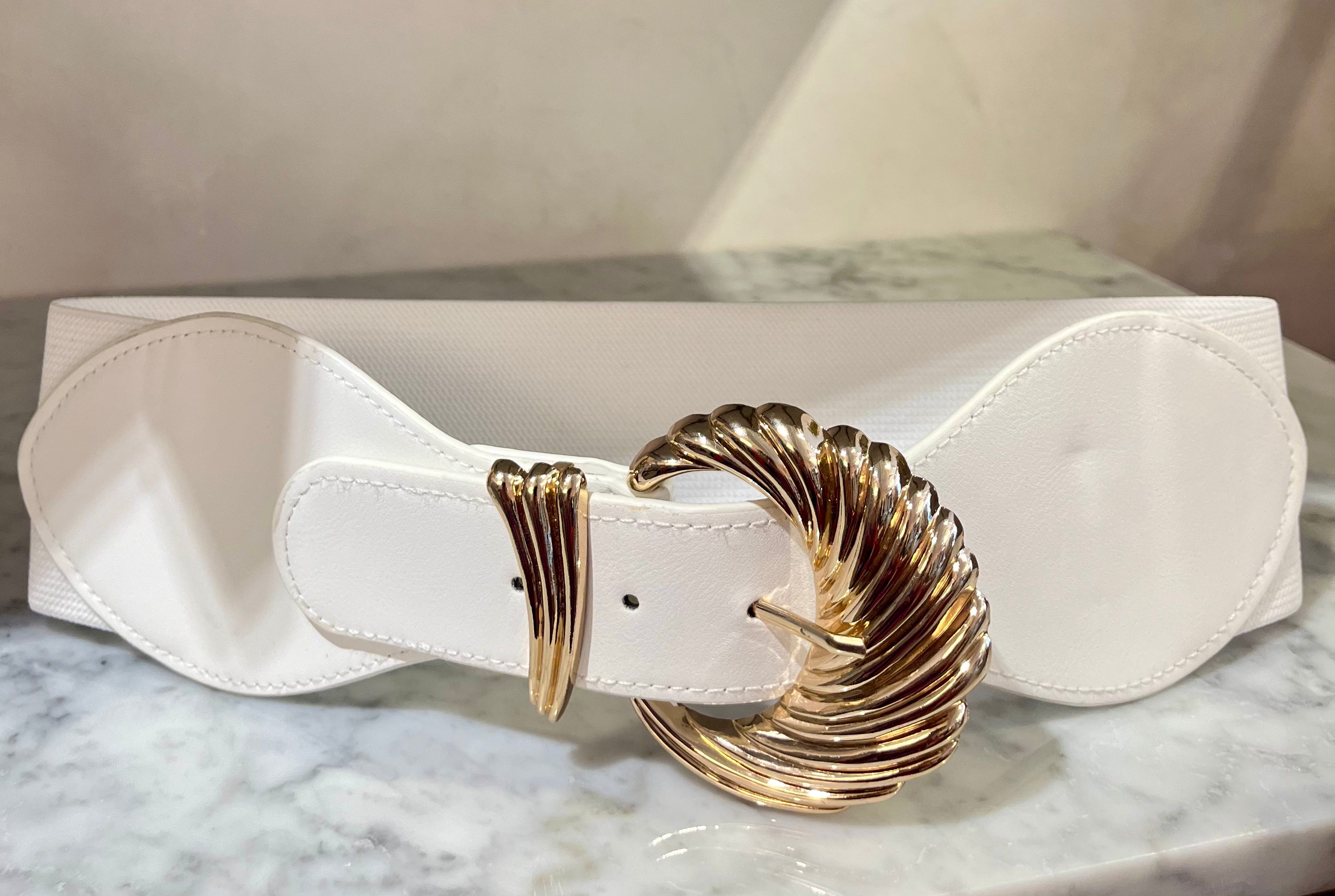 White Swirl Metal Buckle Belt