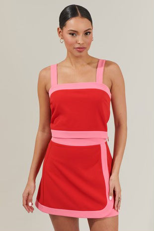 Red Pink Addilyn Colorblock Mini Skirt