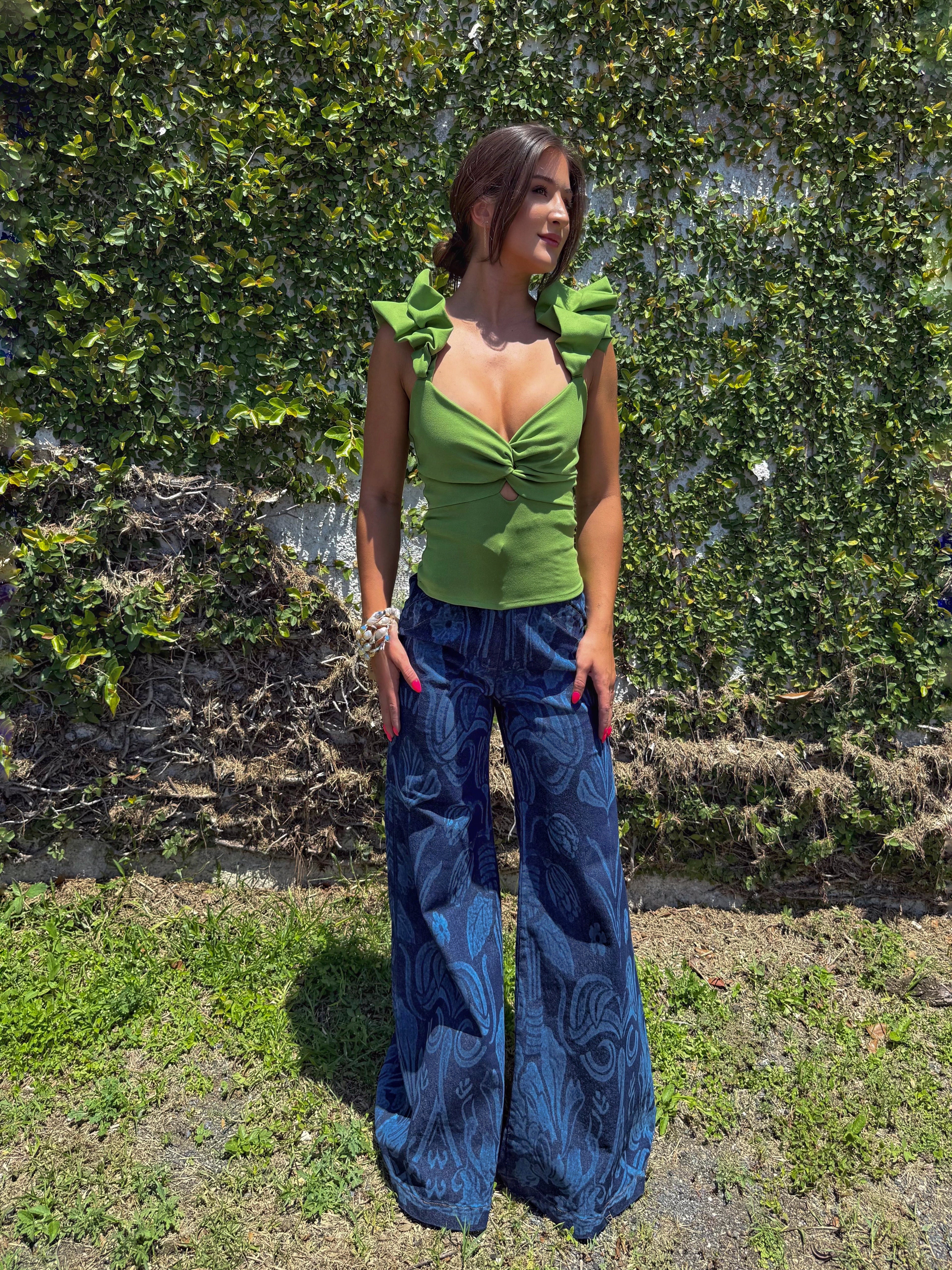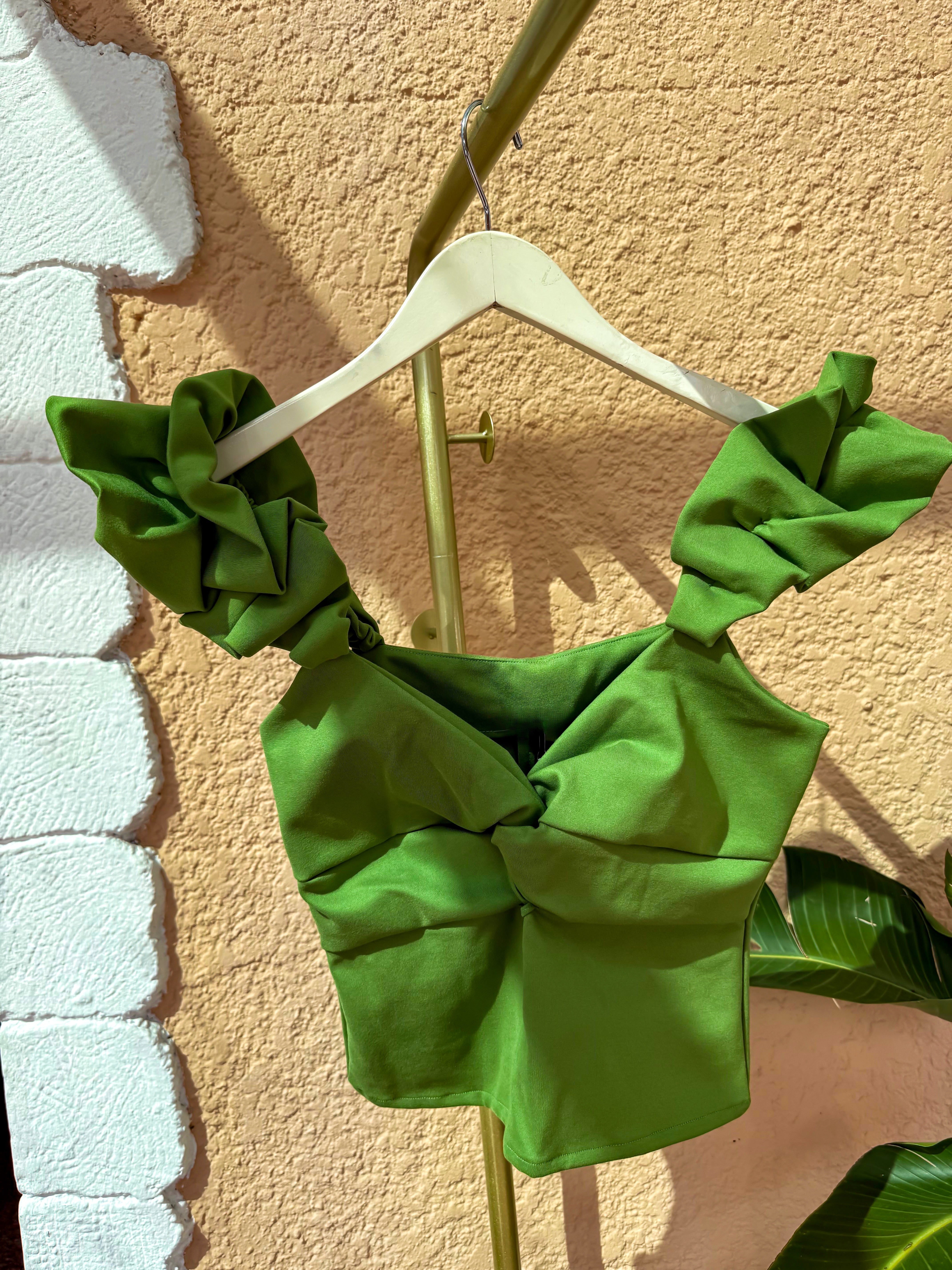 Top anudado, con escote en v y tiras englobadas. Un top ideal para elevar tus looks por su diseño y silueta, ademas para brindar equilibrio a faldas o pantalones con estampados, dandole así elegancia y glamour.