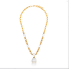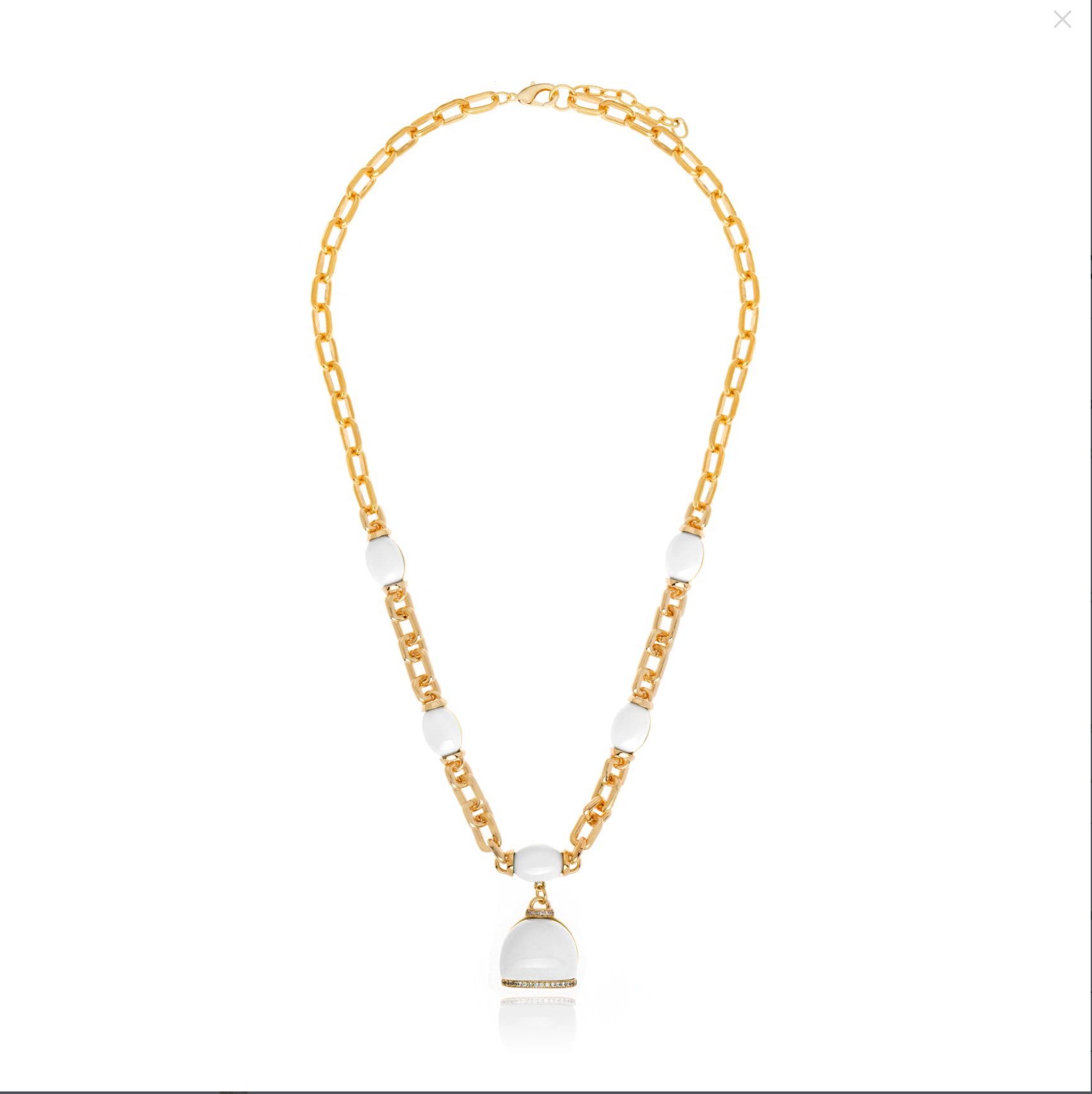 Elevate your everyday style with the Capri Necklace, a sophisticated chain design featuring a striking white detail pendant. This versatile piece seamlessly transitions from day to night, adding an instant touch of elegance to any outfit. The refined gold chain pairs beautifully with the contrasting white accent, creating a modern yet timeless aesthetic. Perfect for layering or wearing solo, this necklace is a wardrobe essential that complements both casual and dressed-up looks. Invest in a piece that delivers both style and substance.