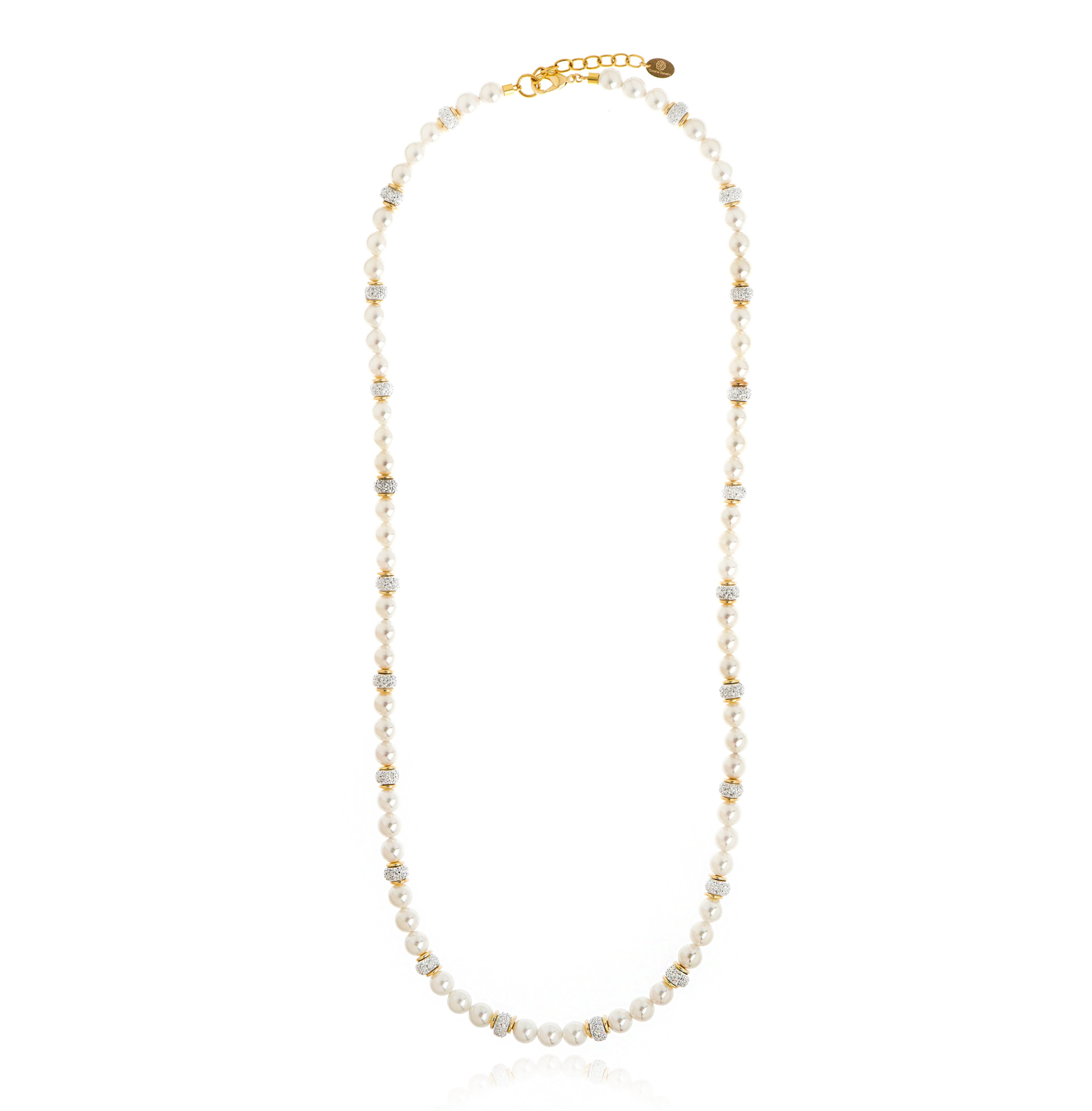 Elevate your everyday elegance with this stunning long pearl necklace, where lustrous pearls meet gleaming gold accents and sparkling crystal details. The extended length creates a sophisticated silhouette that drapes beautifully, making it perfect for layering or wearing solo. Each piece combines timeless pearl beauty with modern glamour, catching light from every angle. Whether you're dressing up for a special occasion or adding polish to casual wear, this necklace delivers premium style that feels both luxurious and effortlessly wearable.