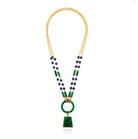 The Lucciole Necklace brings vibrant sophistication to your collection with its luxurious gold chain adorned with captivating green and blue stones. Each gemstone catches the light beautifully, creating an eye-catching statement piece that commands attention. Whether you're dressing up for a special occasion or elevating your everyday aesthetic, this necklace delivers undeniable elegance and personality. The rich color palette makes it a versatile addition that pairs effortlessly with multiple outfits and styles. Embrace the allure of fine jewelry that truly stands out.