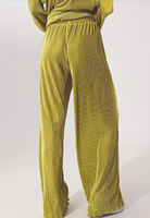 New Satin Olive Green pleated wide leg long pant.