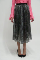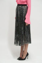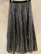 Black Midi Skirt with metallic/silver sequins and elastic waistband.