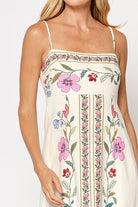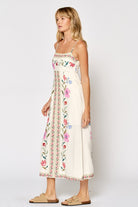 Ivory Strappy Linen Maxi Dress with Colorful Details.