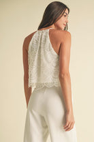 Elevate your style in this beautiful crop top with delicate sequin and pearl embellished details throughout.