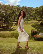 The Onia Maxi Dress is a versatile white knit piece ideal for summer. Wear it effortlessly as a cover-up or layer a nude slip underneath for a chic, standalone dress. Its breathable fabric and timeless design ensure comfort and style whether you’re at the beach or out for a casual day. This dress transitions seamlessly from relaxed to refined, making it a must-have for your warm-weather wardrobe.
