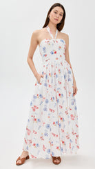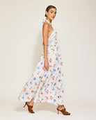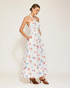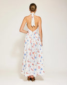 This Reeta Midi Dress features a sweetheart neckline complemented by halter ties for an adjustable fit. It is sleeveless and includes a hook-and-eye closure with a back zipper. Fully lined for added comfort, it beautifully flatters your figure. The model, who wears size S, stands at 5'10" (177.8 cm).