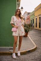 Short Linen Romper With Puff Sleeve.