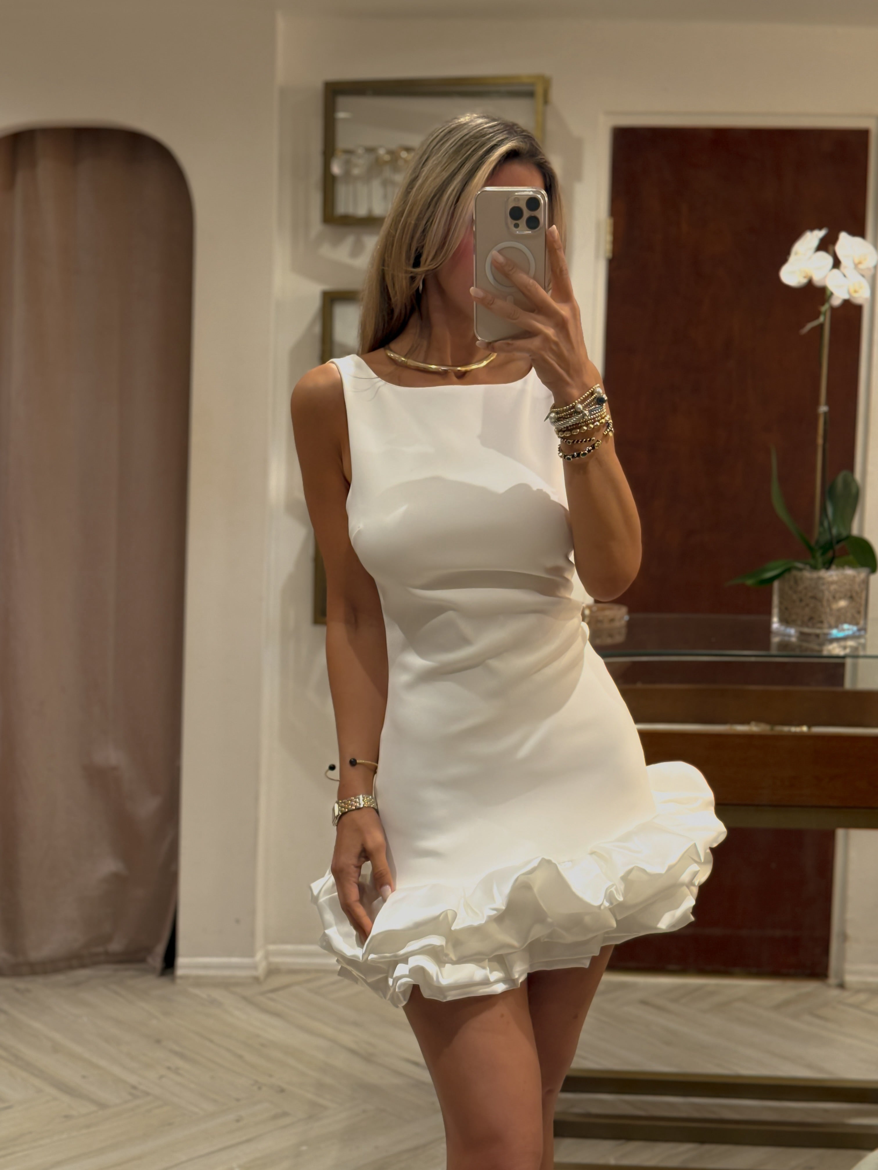 Crafted from airy silk, the 'Cloud' mini dress has a drop-waist silhouette decored with elegant pleating and stacked tiers of weightless silky ruffle. Style yours with crystal jewels for a bit of sparkle.