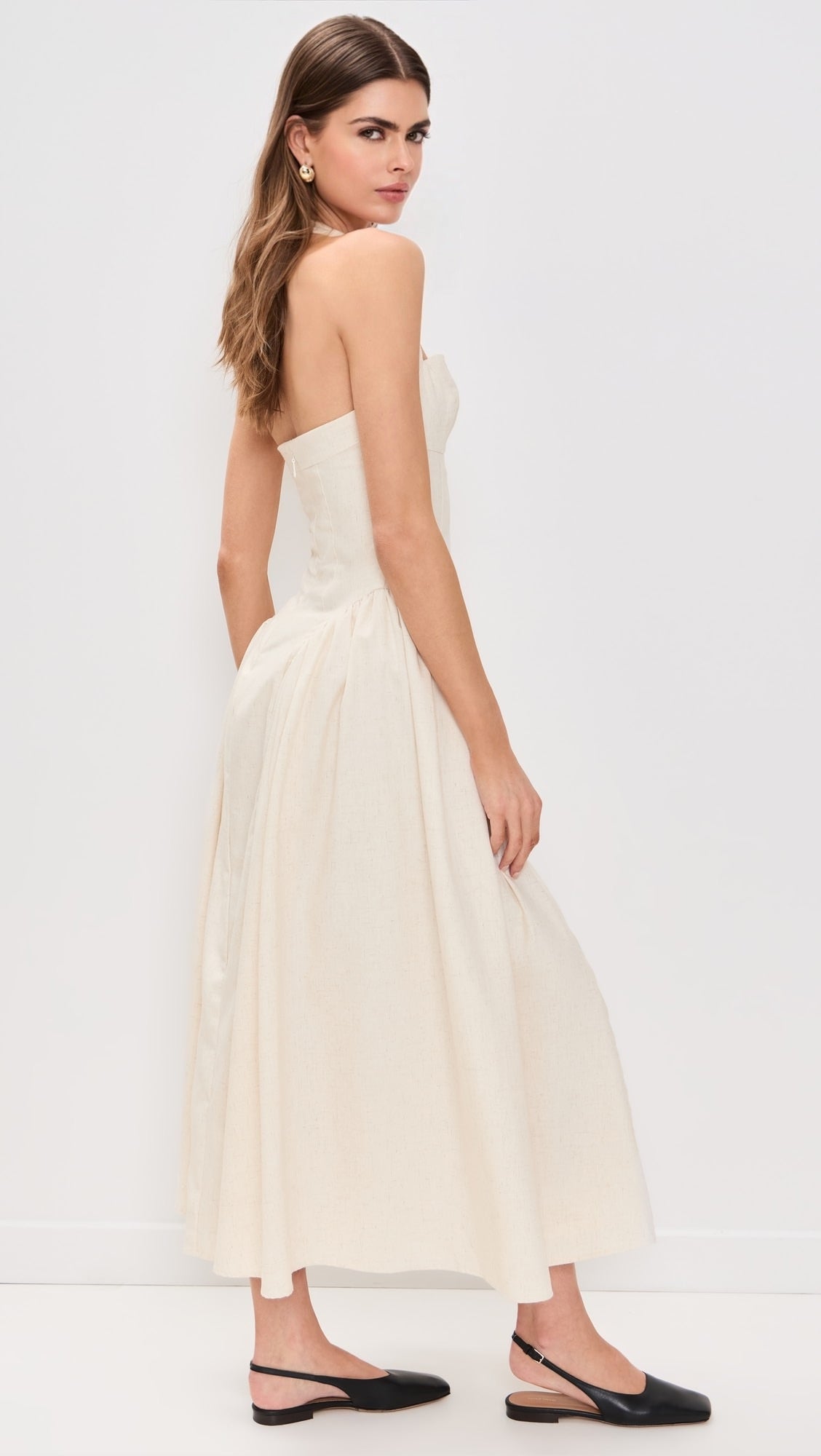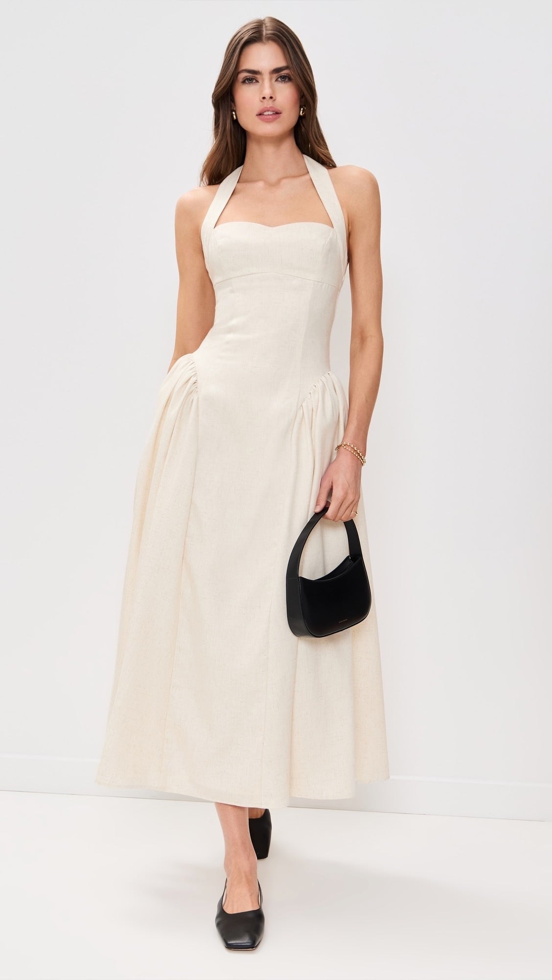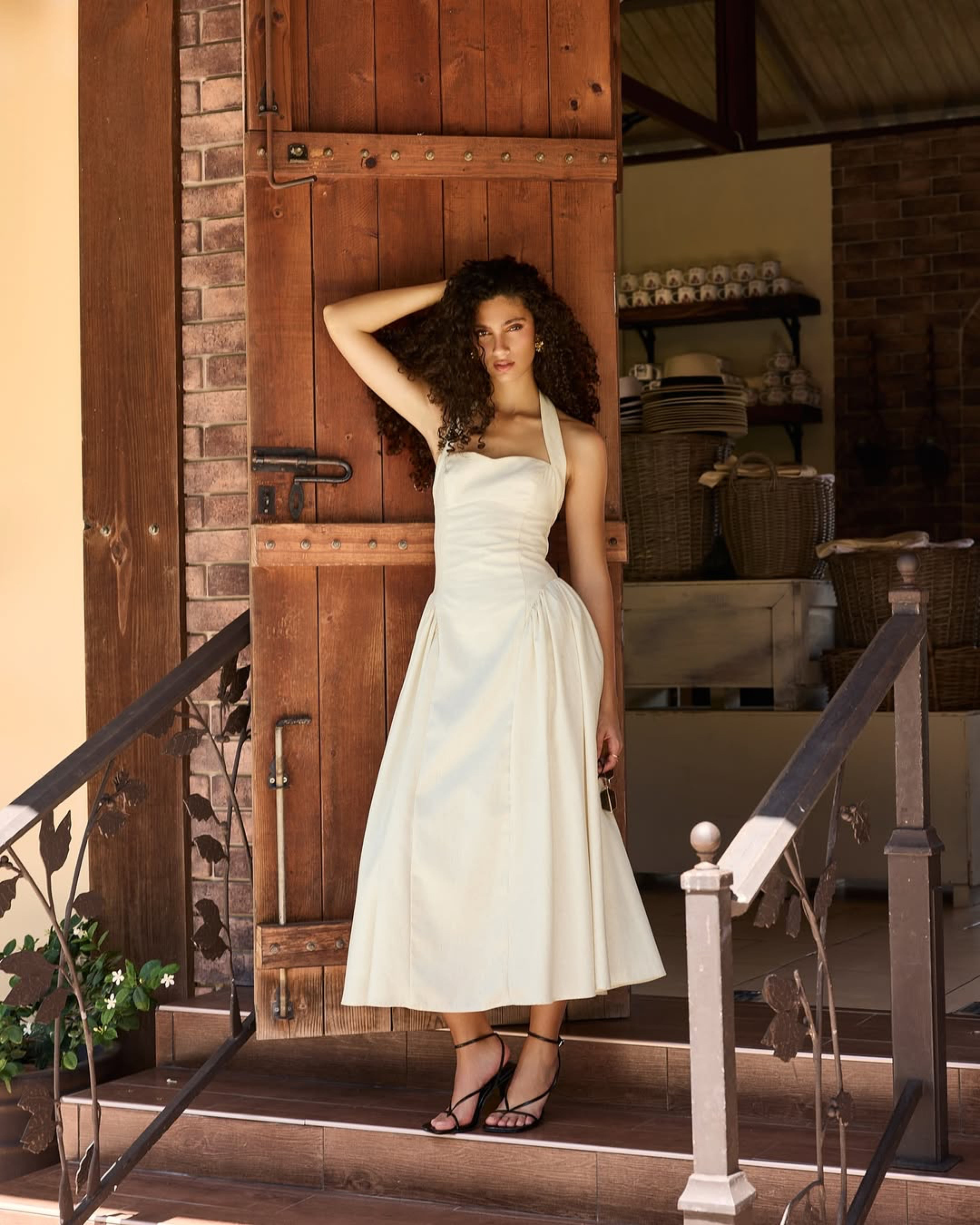 The Greta Halter Maxi Dress is the epitome of quite luxury. Its a Light-weight linen blend fabric with Halter neckline and with adjustable buttons and buttonholes with a Hook-and-eye and hidden back zip.Its also Lined.