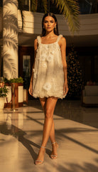 Elevate your style with the Ivory Goddess Mini Dress, featuring exquisite 3D flower embroidery that adds delicate texture and timeless elegance. Its soft ivory hue complements every skin tone, creating a radiant and graceful look perfect for special occasions. Designed to hug your silhouette, this dress blends sophistication with effortless charm, making you feel like a true goddess wherever you go.