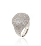 Sculptural and radiant, the Ceresolo Ring is designed to impress with its bold silhouette. The domed surface is fully encrusted with pavé-set cubic zirconia, creating a refined sparkle that catches the light from every angle. Crafted in rhodium-plated bronze, it offers a luminous silver tone that enhances the brilliance of its intricate pavé work.