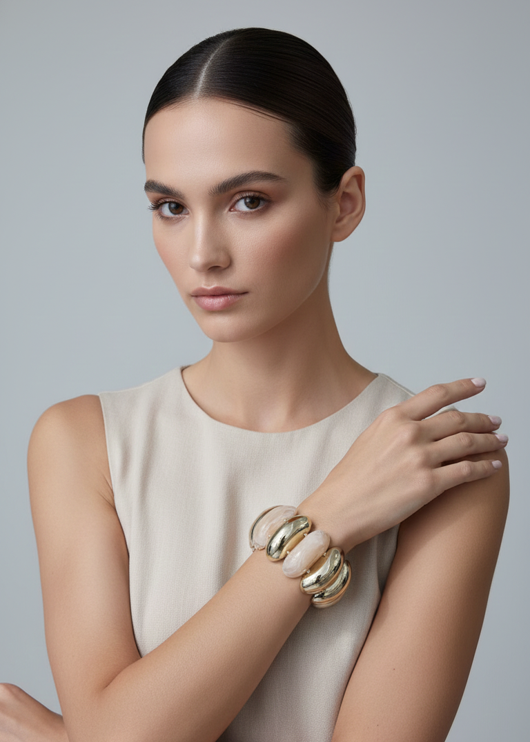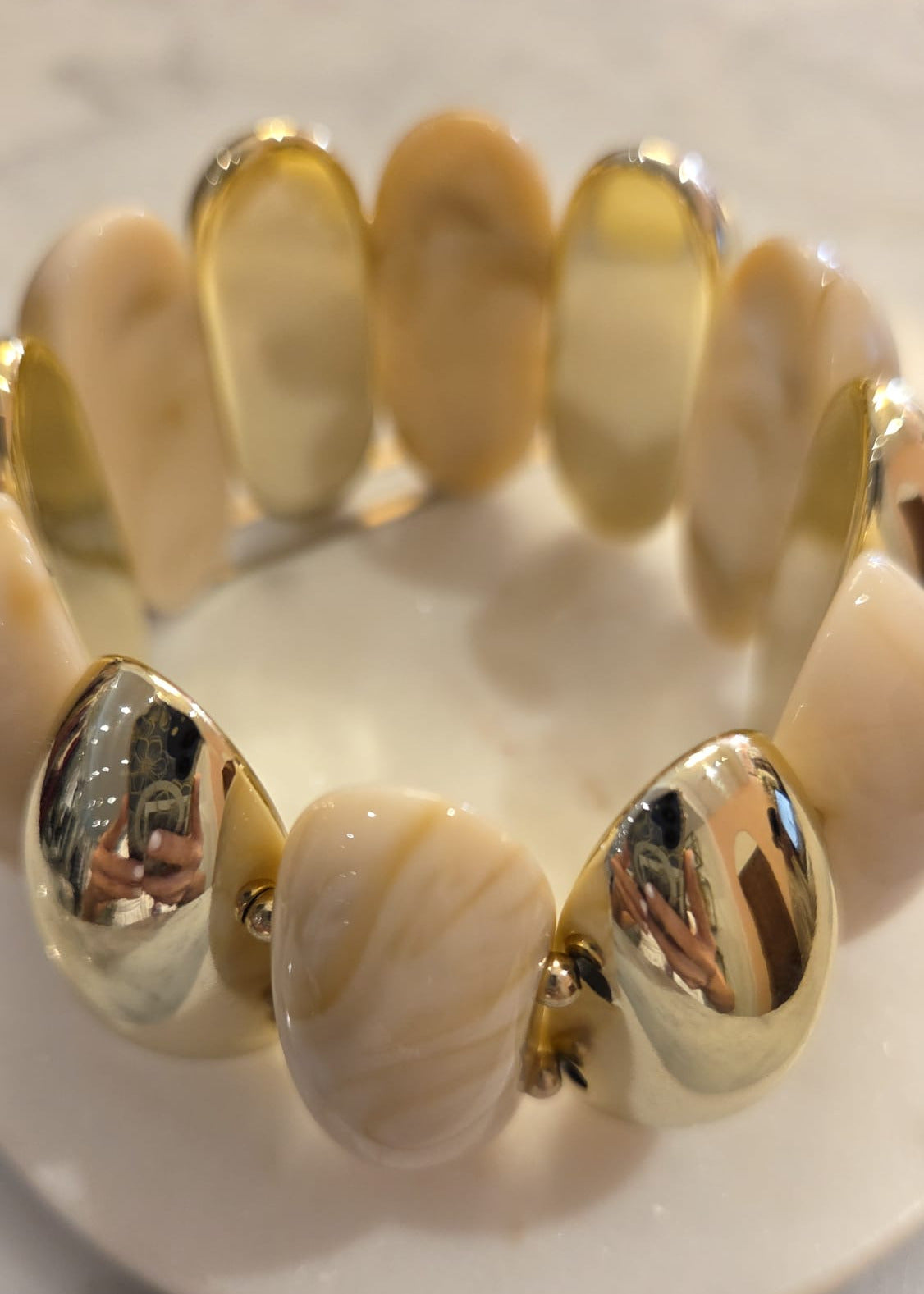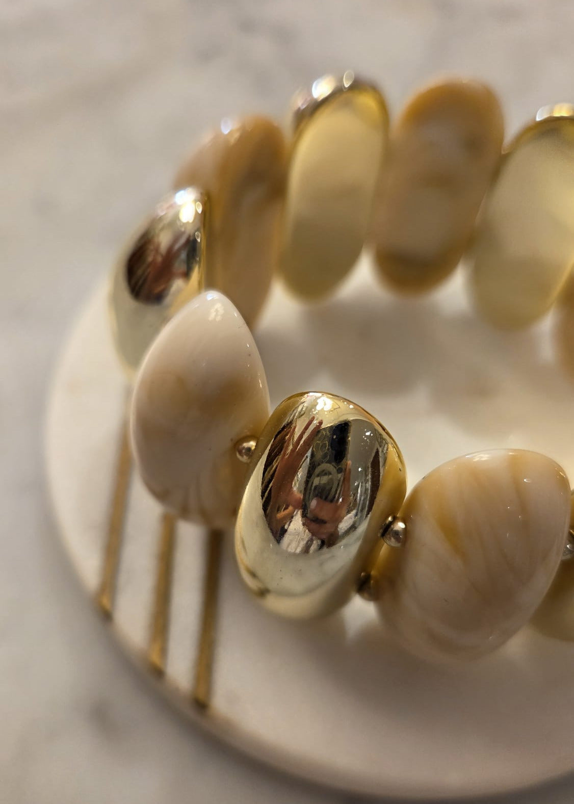 Discover warmth and sophistication with the Golden Beige bracelet—a stunning combination of soft beige and gleaming gold tones that radiate understated luxury. The stretchy design ensures a perfect fit for any wrist, offering effortless comfort throughout your day.