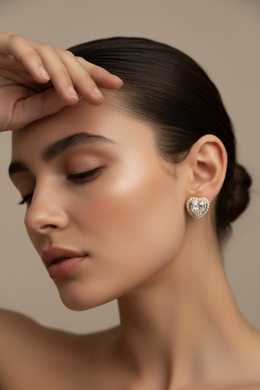# 14K Gold Dipped Heart Crystal Stud Earrings Elevate your everyday elegance with these stunning heart crystal stud earrings, finished in luxurious 14K gold dipping. Each piece features a radiant crystal heart that catches light beautifully, adding a touch of sophistication to any look. The secure stud design makes them perfect for all-day wear, whether you're heading to the office or out for the evening. A timeless investment piece that transforms simple outfits into polished, refined statements. These earrings are the perfect gift for someone special or a must-have addition to your jewelry collection.