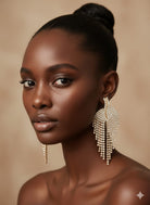 Make a bold statement with these dazzling rhinestone earrings featuring cascading tassel fringe. Each pair catches light beautifully, creating an eye-catching sparkle that elevates any outfit from casual to glamorous. The long, flowing design adds movement and dimension to your look, perfect for nights out, special occasions, or whenever you want to turn heads. Lightweight yet impactful, these earrings deliver premium shine without the weight. Transform your style instantly with this must-have accessory.