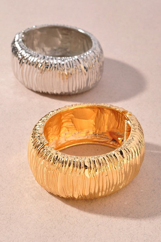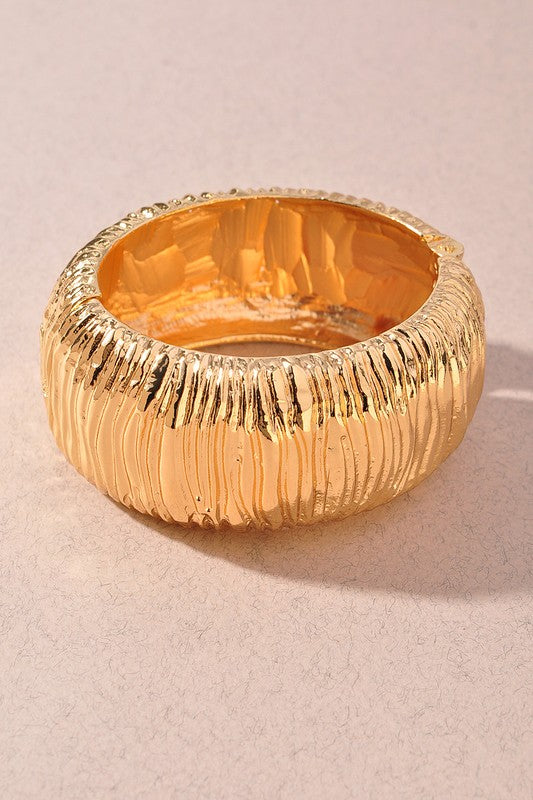 This Textured Gold Bangle Bracelet is a bold fashion statement,