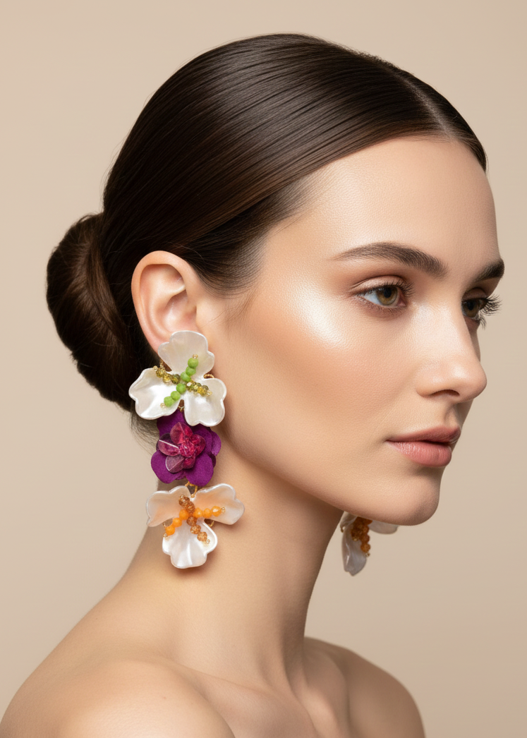 Elevate your everyday look with these stunning handmade Trio Jardin Floral Earrings, where three vibrant blooms come together in one chic design. Each pair celebrates artisanal craftsmanship with a colorful palette that effortlessly complements any outfit. Perfect for adding a touch of botanical elegance to your jewelry collection, these earrings bring garden-inspired charm and modern sophistication to your personal style.