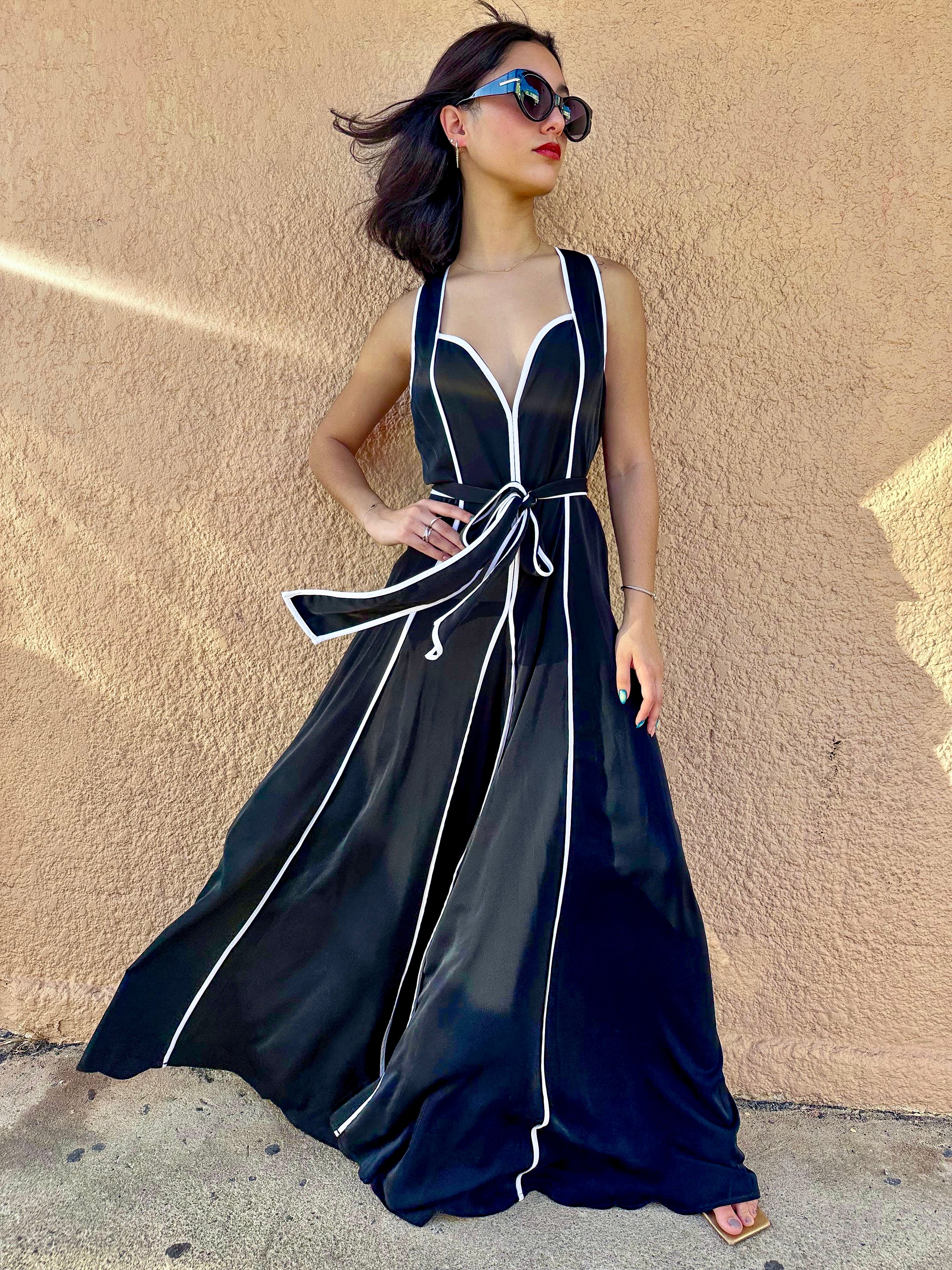 Elevate your wardrobe with this sophisticated black jumpsuit that commands attention. The sweetheart halter neckline creates an undeniably flattering frame, while crisp white accents deliver contemporary contrast and visual intrigue. What sets this piece apart is its versatile belt—style it multiple ways to match your mood and occasion. Whether you're heading to an evening event or making a bold fashion statement, this jumpsuit seamlessly blends timeless elegance with modern flair. It's the one piece that does it all, transforming your look from classic to daring in seconds.