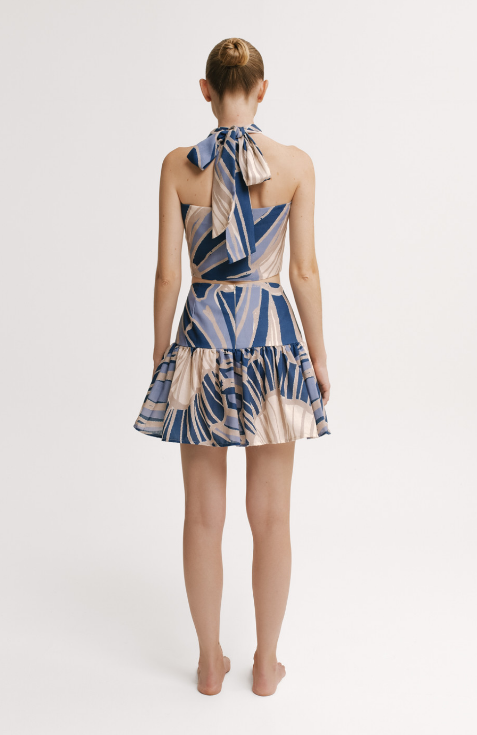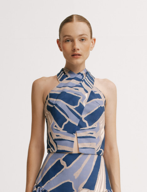 Elevate your warm-weather wardrobe with the Zoe Caracola Top, a striking woven crop featuring a flattering halter neckline and eye-catching blue print. The breathable woven fabric drapes beautifully while the cropped silhouette pairs effortlessly with high-waisted bottoms for a polished, contemporary look. Perfect for casual outings or layered styling, this piece delivers versatile appeal with undeniable visual impact. A must-have addition to any trend-forward closet.