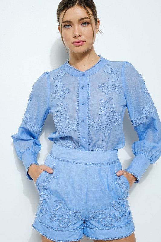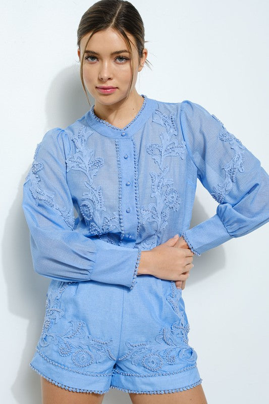 Blue Everly Pearl Trims Set