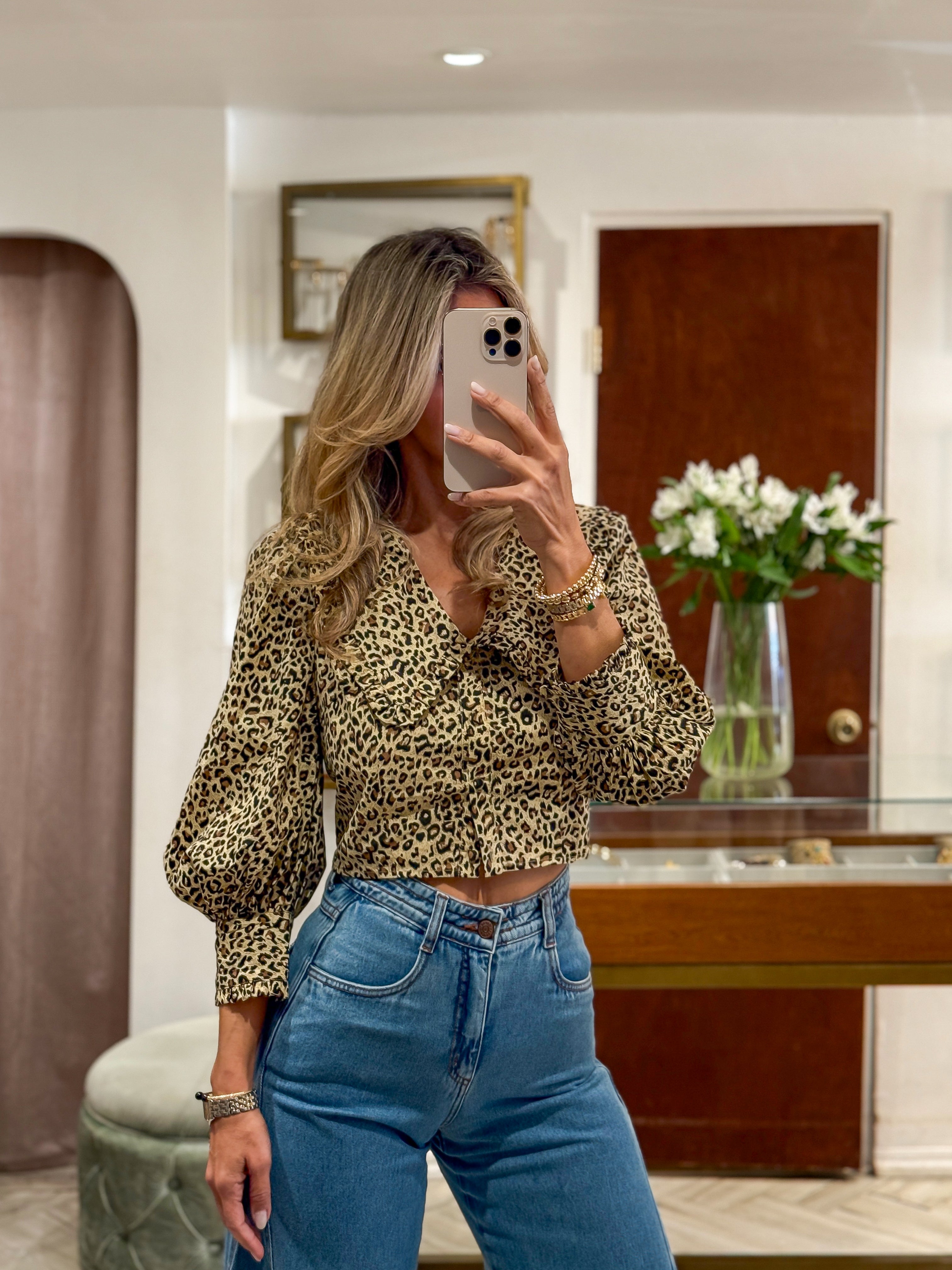 Elevate your wardrobe with the Amalia Blouse, featuring a bold leopard print that effortlessly adds a touch of wild sophistication. Designed for comfort and style, this blouse pairs perfectly with brown pants for a chic, polished look. Whether for work or a night out, the Amalia Blouse makes a confident statement that enhances your natural elegance.