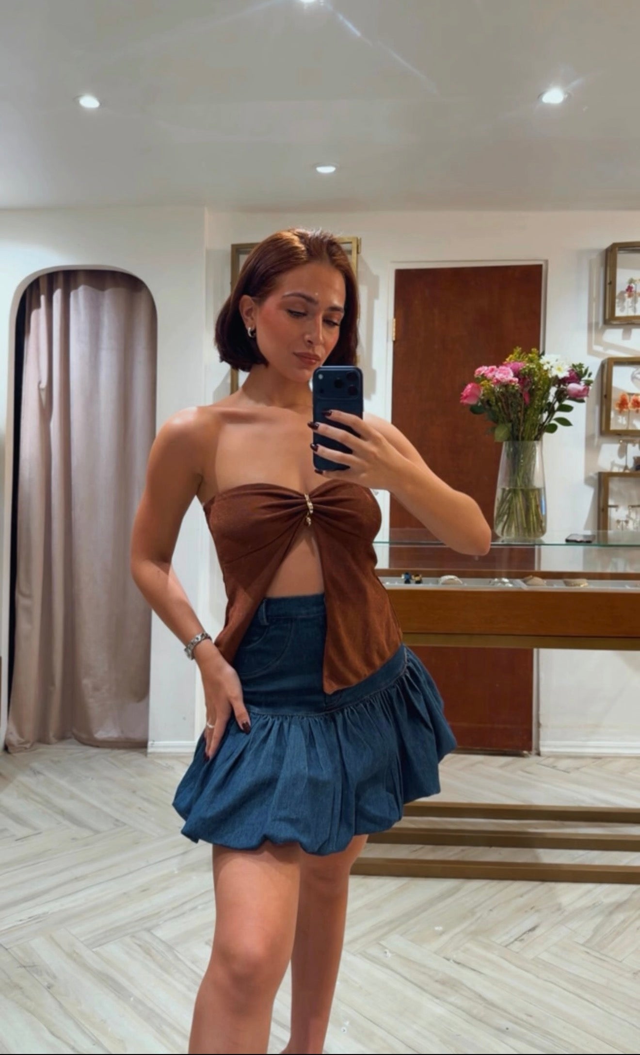 Elevate your style with the Glided Twist Tube Top, featuring a sleek fly-away design accented by elegant trim and a striking gold buckle detail. This top blends modern flair with a flattering fit, perfect for turning heads at any event or night out. Add a touch of sophistication and effortless charm to your wardrobe.