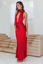 Elevate your style with the Fiorella Maxi Skirt, a cherry red halter dress featuring a seductive plunge V-neck and a silky smooth fabric that flows elegantly. Its open back design adds a daring touch, perfect for making a striking impression at any event. This maxi dress combines comfort with bold sophistication, ensuring you stand out effortlessly.