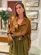 Elevate your wardrobe with the Henry Cropped Trench Jacket, a sophisticated statement piece that reimagines classic tailoring. Crafted in luxurious camel fabric, this cropped silhouette flatters every frame while the asymmetrical cape detailing adds dramatic flair and movement. The included black leather belt cinches the waist for a polished, intentional look, while delicate button charms provide an unexpected touch of personality. Perfect for layering over dresses or pairing with tailored trousers, this jacket transitions seamlessly from boardroom to evening events. Invest in timeless elegance with architectural design that commands attention.