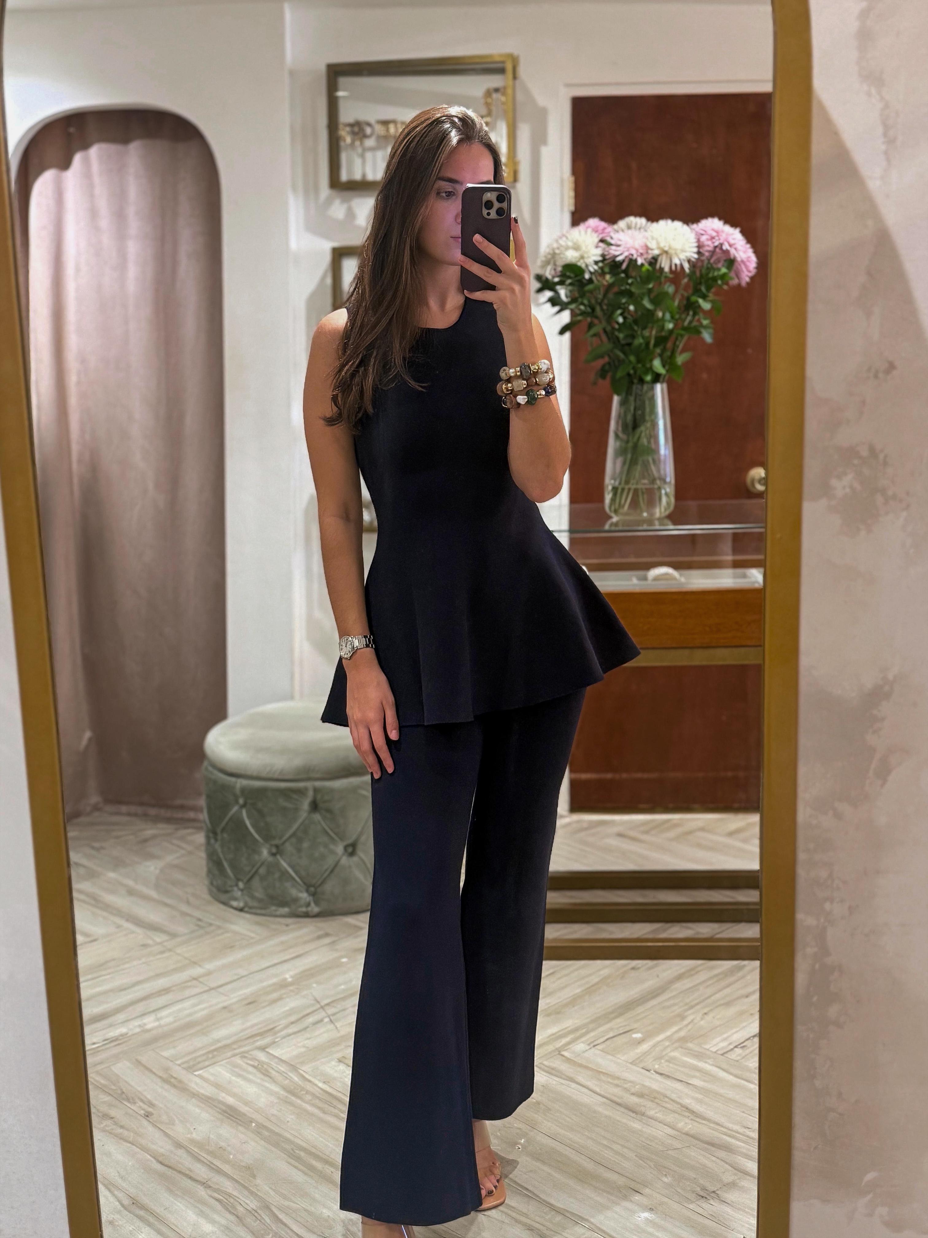 Elevate your wardrobe with the Indigo Tibi Pant, a sophisticated navy blue essential that flatters every silhouette. The high-waisted design creates a refined, elongated line while the flared knit construction offers comfortable movement without sacrificing style. Crafted from soft, breathable knit fabric, these pants transition seamlessly from office to evening wear. Perfect for creating polished looks that feel as good as they look, the Indigo Tibi Pant is the versatile piece you'll reach for again and again.