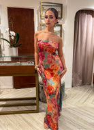 Elevate your style with the Parisian Floral Maxi Dress, featuring a strapless satin design that gracefully highlights your neckline. Its vibrant floral pattern adds a touch of elegance and color, perfect for making a statement at any event. The flowing maxi length ensures comfort and movement, while the smooth satin fabric offers a luxurious feel against your skin. Embrace effortless sophistication and turn heads wherever you go with this stunning, colorful dress.