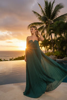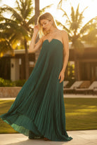 while the pleated column silhouette offers a refined, elongated look. Reinforced with inner soft boning on the front bodice for a sculpted fit that moves beautifully with you. Perfect for special occasions when you want to make a sophisticated statement.