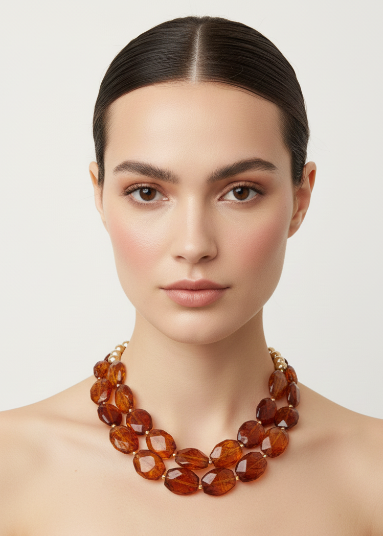Make a bold statement with this striking amber beaded chunky necklace, where rich, warm tones and substantial presence command attention. The oversized beads create a luxurious, textured look that instantly elevates your style with confidence and edge. Whether you're channeling bohemian vibes or modern glamour, this amber necklace delivers the impact and allure that transforms any look into something unforgettable.