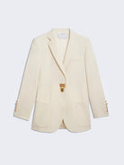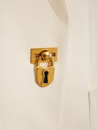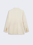 Elevate your style with the Bijoux Blazer, a timeless straight-cut jacket crafted from luxurious heavy cream satin. This elegant piece is distinguished by its signature Padlock jewel clasp in hammered gold brass at the front, adding a bold yet refined touch. Complemented by hammered gold brass bijoux buttons on the cuffs, it effortlessly combines classic sophistication with unique detailing, perfect for making a memorable statement at any occasion.