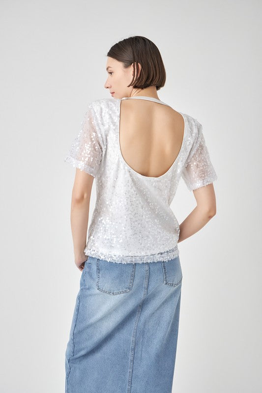 Sequin open back top.