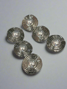 Classic round earrings with a rippled design and a pearl center, giving off a vintage and elegant vibe.