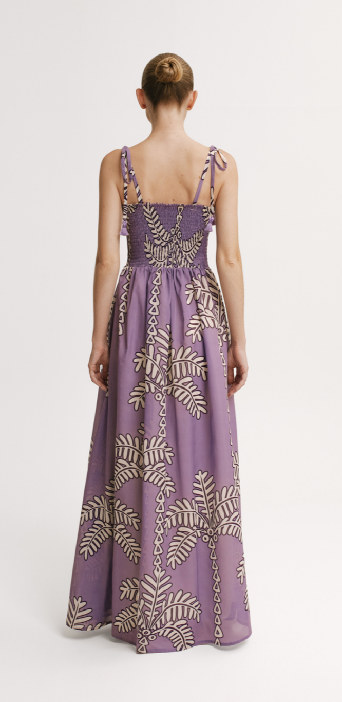 Elevate your wardrobe with the Evelyn Malva Dress, a dreamy lilac corset top maxi dress designed for effortless elegance. Featuring a flattering A-line silhouette and delicate tie strap details, this dress combines comfort and style beautifully. The soft floral print adds a touch of romance, making it perfect for special occasions or standout everyday wear. Embrace your feminine charm with this captivating, versatile piece.