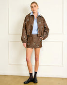 Elevate your style with the Harriet Mini Skirt, featuring rich brown fabric accented by dazzling sequin details. This skirt combines playful sparkle with a versatile color, perfect for making a statement day or night. Its flattering mini length adds a touch of boldness, making it an essential piece for confident, fashion-forward looks.