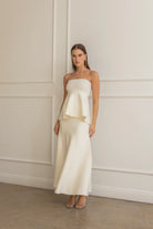 Mid-weight rib knit sweater - Regular fit - Midi length - A-line silhouette - Fold-over waistband - Unlined - Pullover design, no closure.