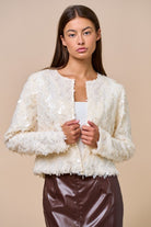 Elevate your style with the Isla Luz Cardigan, a stunning ivory sequin piece designed to add a touch of glamour to any outfit. Its delicate shimmer catches the light effortlessly, making it perfect for evening events or special occasions. Lightweight and comfortable, this cardigan enhances your look while keeping you cozy and confident. Make every moment shine with Isla Luz.
