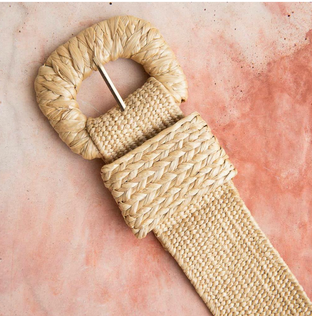 RAFFIA ELASTIC ROUND BUCKLE BELT.