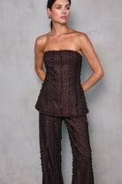 Elevate your wardrobe with the Panna Top, featuring elegant brown strapless design richly embroidered for a unique, sophisticated look. Perfect for making a stylish statement at any event, this top combines comfort with eye-catching detail, ensuring you stand out effortlessly.