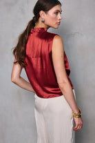 Elevate your style with the Parven Top, a striking red satin piece featuring a high neck design. Its smooth, lustrous fabric drapes beautifully, adding a touch of sophistication to any outfit. Perfect for both elegant evenings and chic daytime looks, this top offers a bold splash of color while maintaining a refined silhouette. Make a confident statement with the Parven Top’s blend of comfort and undeniable glamour.
