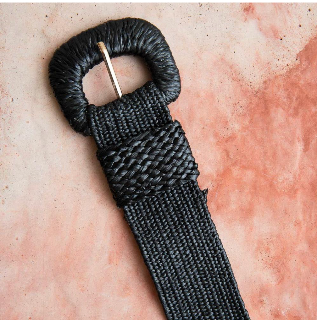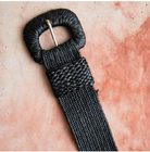 RAFFIA ELASTIC ROUND BUCKLE BELT.