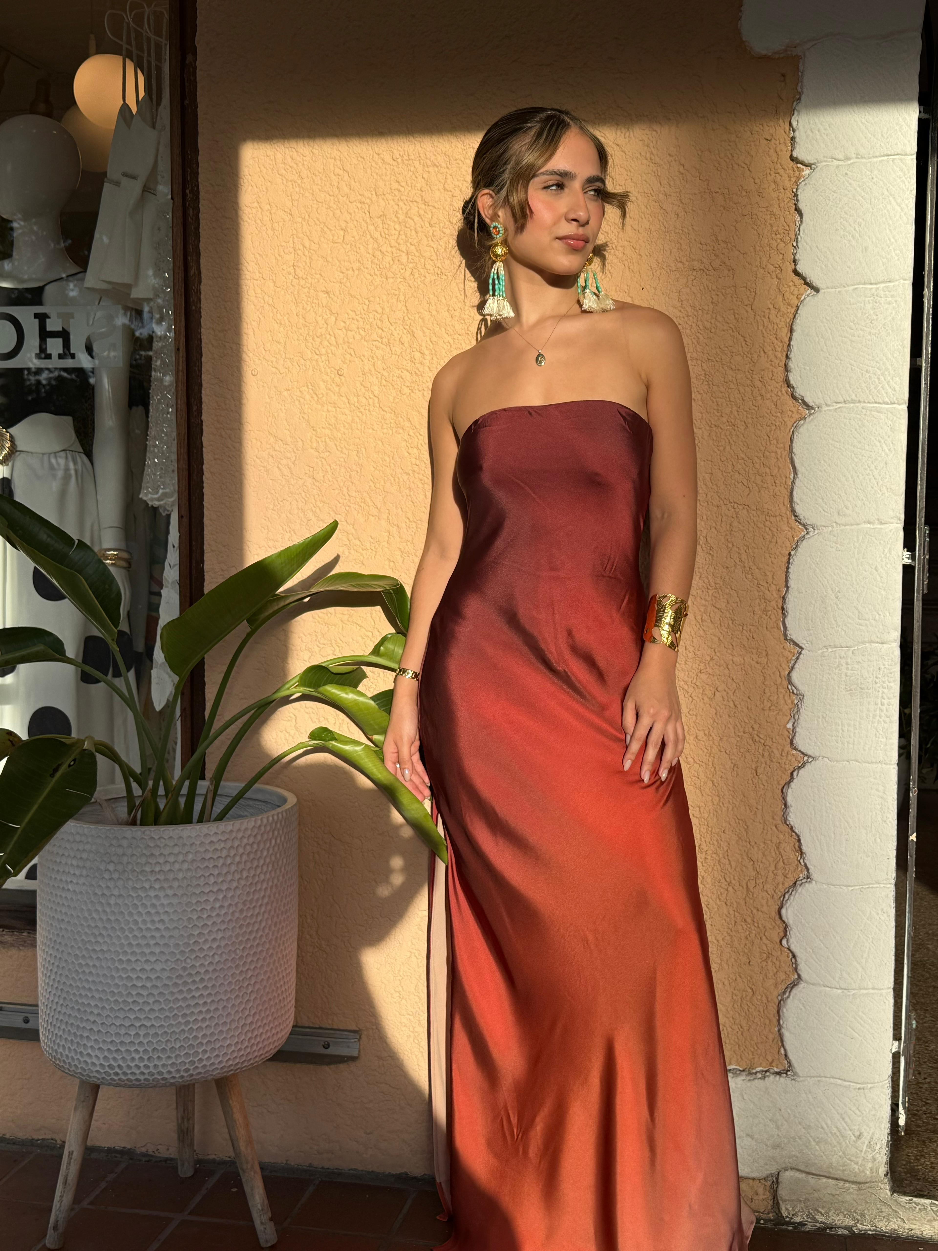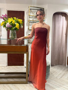 Elevate your evening wardrobe with the Sunset Cecily Dress, a stunning strapless satin maxi that commands attention. The luxurious satin fabric drapes beautifully against your skin, creating an elegant silhouette that flatters every figure. This timeless design transitions seamlessly from formal events to upscale dinners, offering versatility without compromising on sophistication. The strapless neckline exudes confidence and grace, while the flowing maxi length adds an air of refined glamour. Perfect for those moments when you want to feel absolutely radiant and unforgettable.